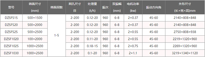 直線振動(dòng)篩是一種產(chǎn)量大、效率高的篩分設(shè)備,該設(shè)備常見(jiàn)型號(hào)有DZSF520(寬500mm,長(zhǎng)2000mm)、DZSF525、DZSF530、DZSF1020、DZSF1025、DZSF1030那么對(duì)于這么多型號(hào)我們?cè)撊绾芜x擇呢?