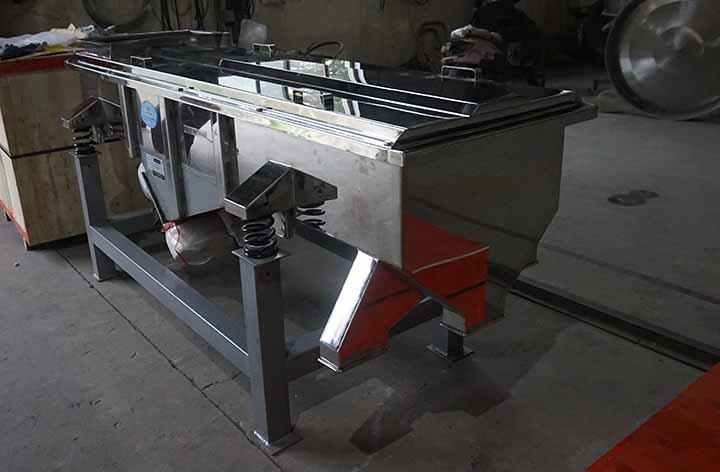 不銹鋼直線振動篩的篩面通常設(shè)計(jì)為5°-15° 的微小傾角,通過2-5 層不銹鋼篩網(wǎng)把濕的、易腐蝕的物料篩分為400目以內(nèi)。